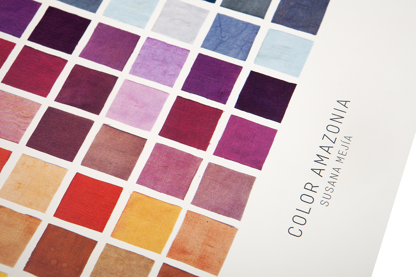 Reproduction of the color chart developed within the framework of the Color Amazonia project, from natural pigments extracted from 11 Amazonian botanical species. Each grid evokes the chromatic richness of the jungle, the result of a process that intertwines art, science, and ancestral knowledge regarding the use of color.